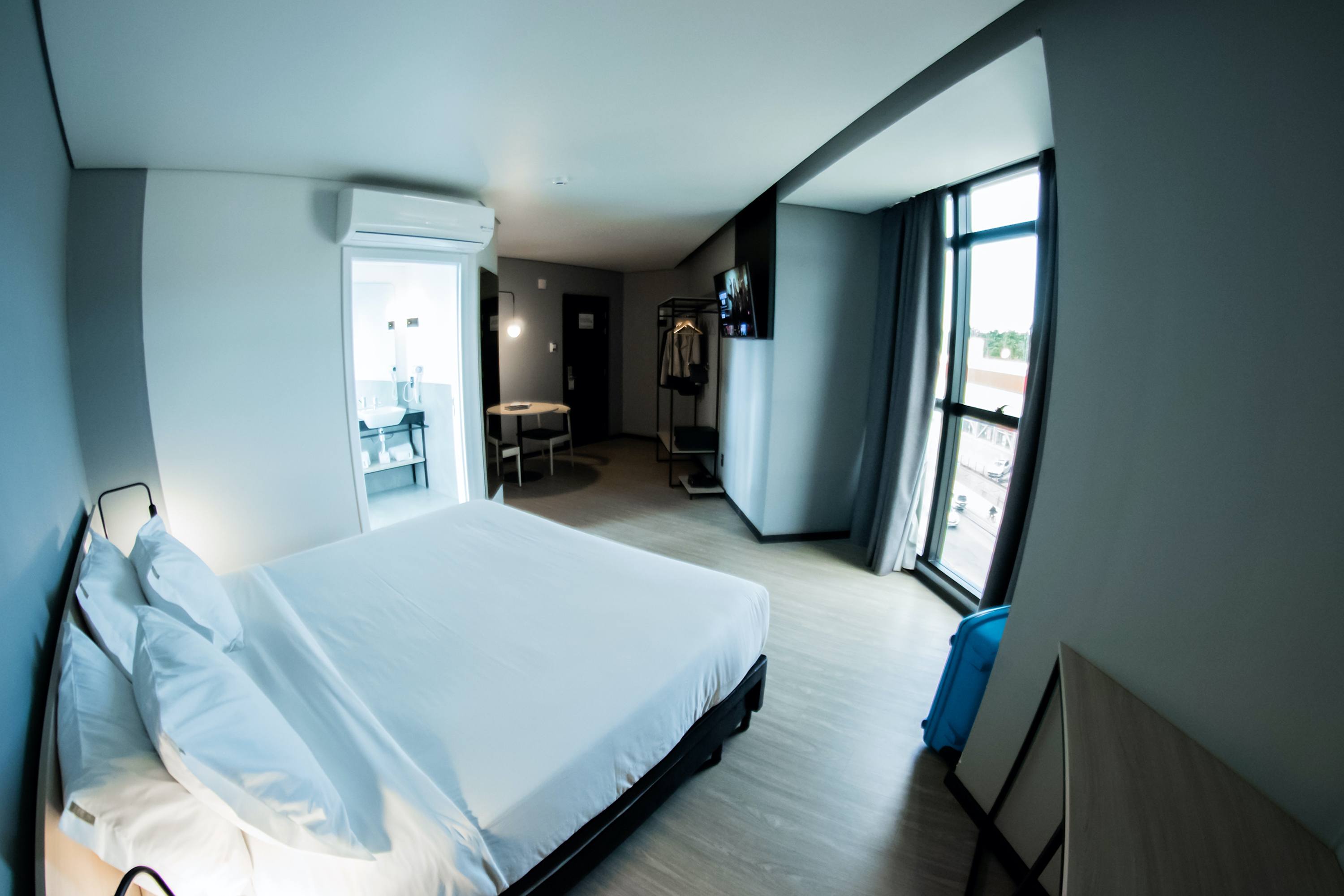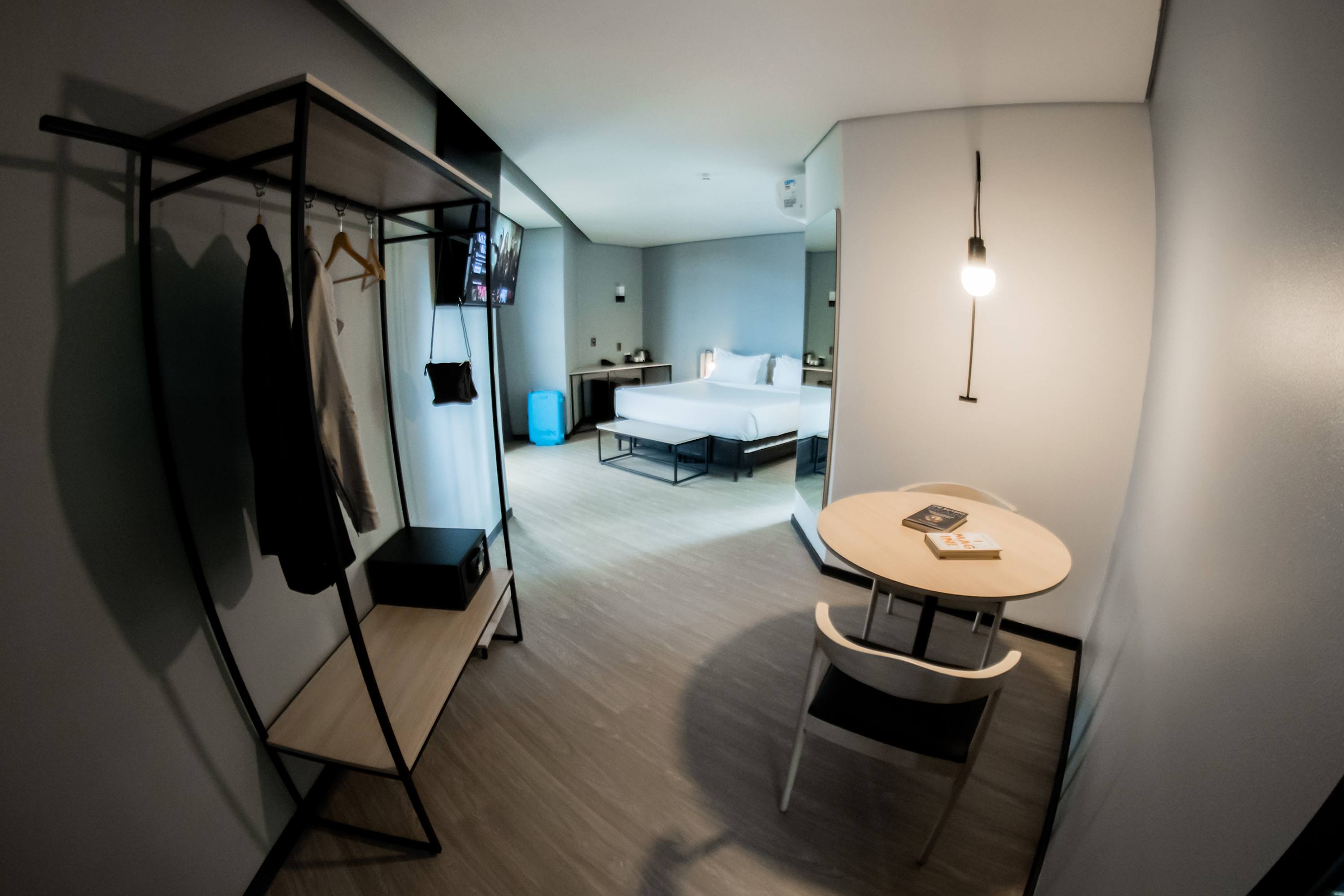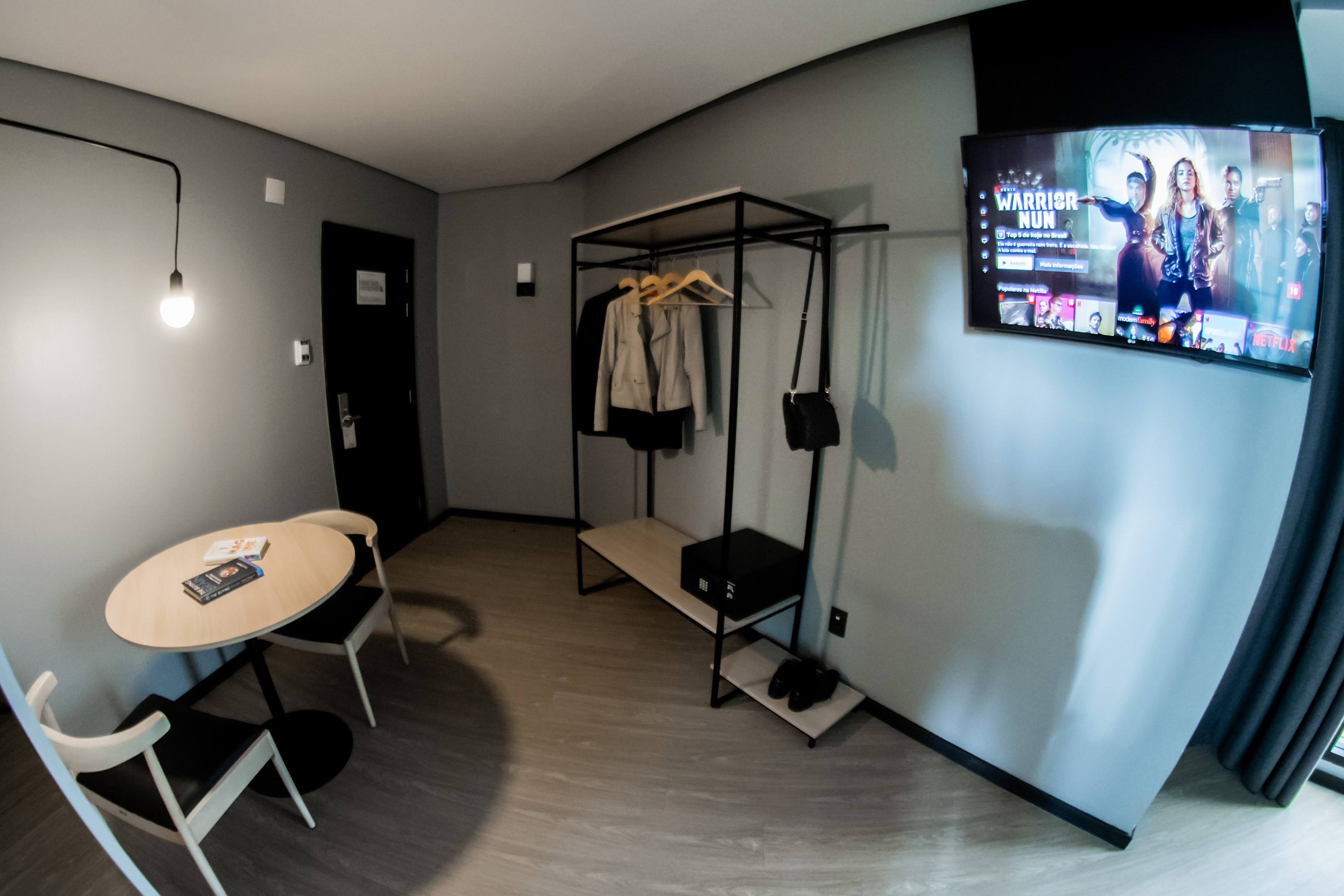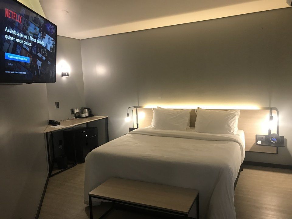 Da fachada ao quarto você vai encontrar a mesma atmosfera. Com design descomplicado, onde a tecnologia se mistura com o conforto e a funcionalidade das acomodações, que contam com SmarTvs, caixas de som bluetooth JBL, iluminação indireta, ar condicionado quente e frio e amenities biodegradáveis. O buffet de café da manhã e a internet Wifi são cortesia e no check-in você ganha um welcome drink.